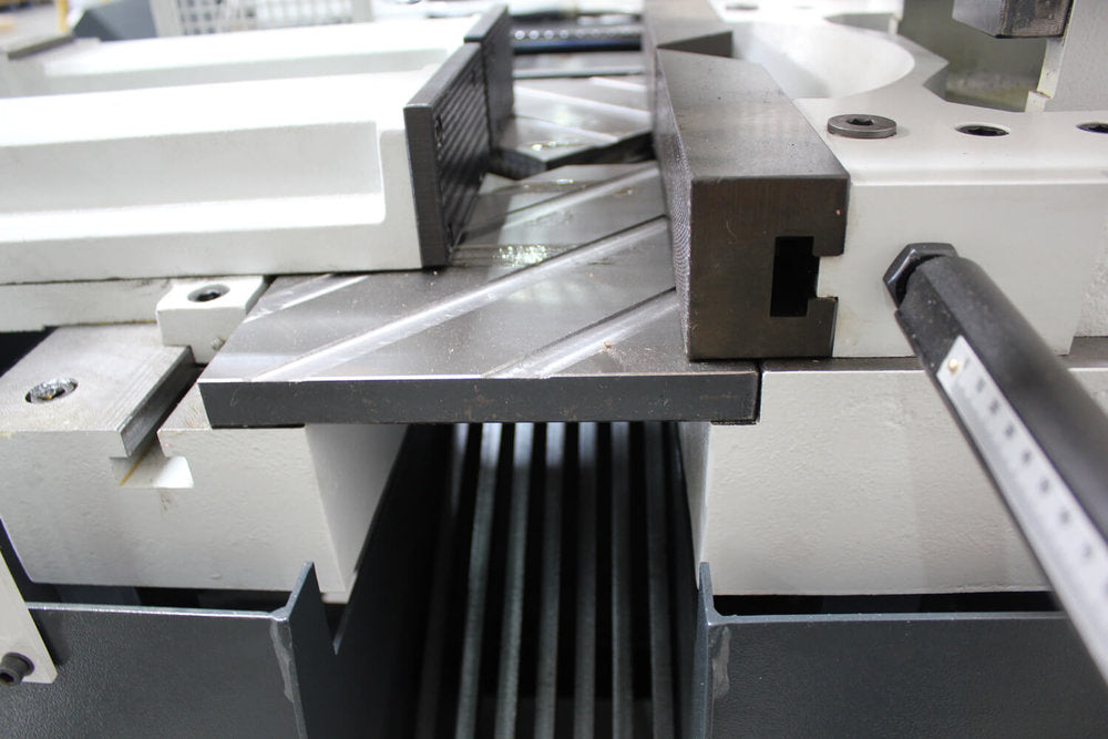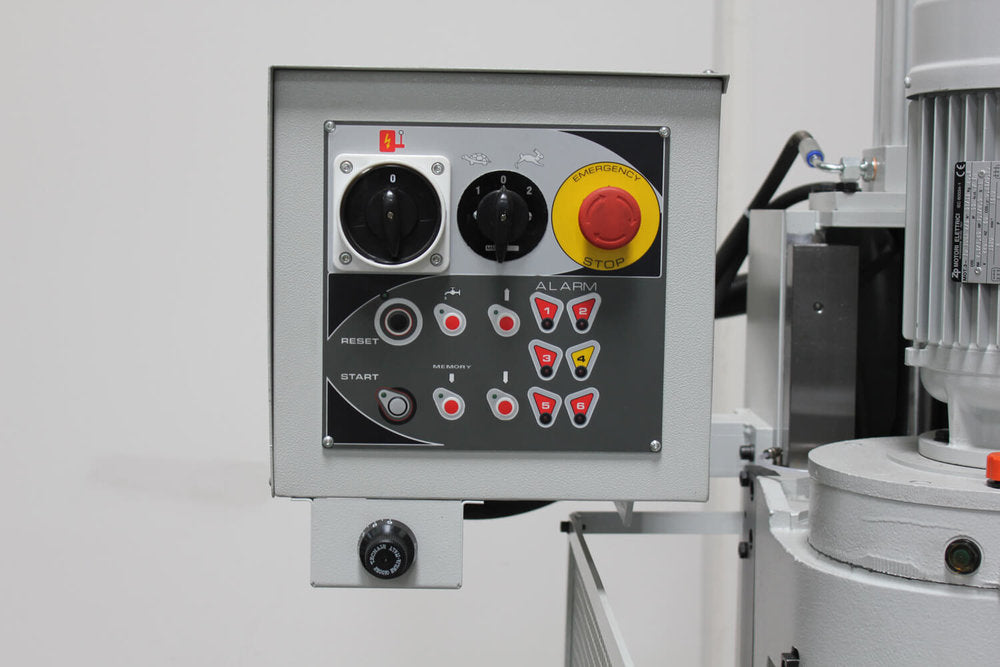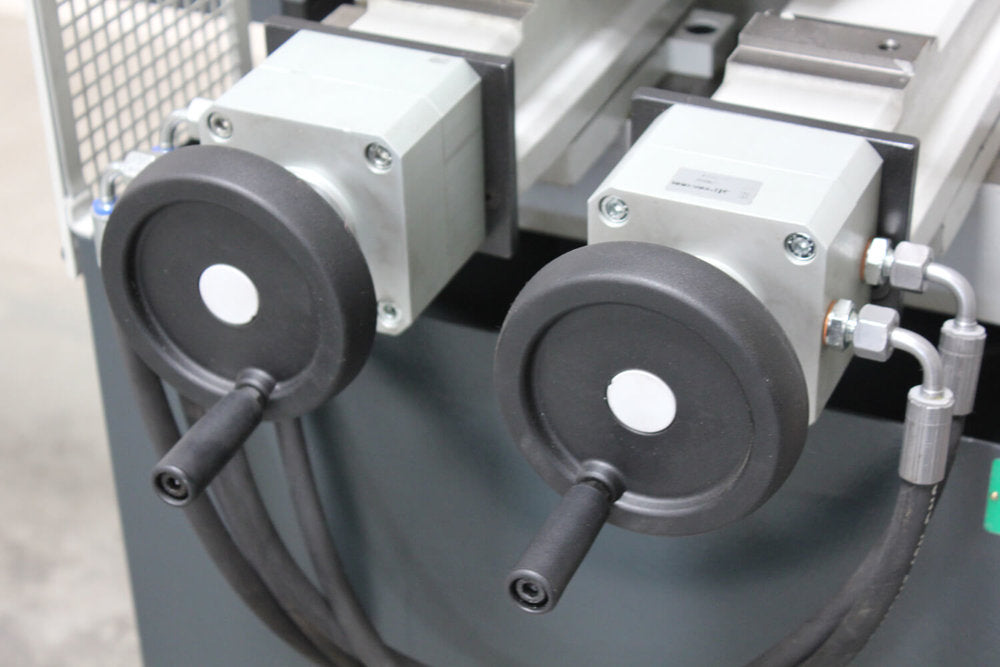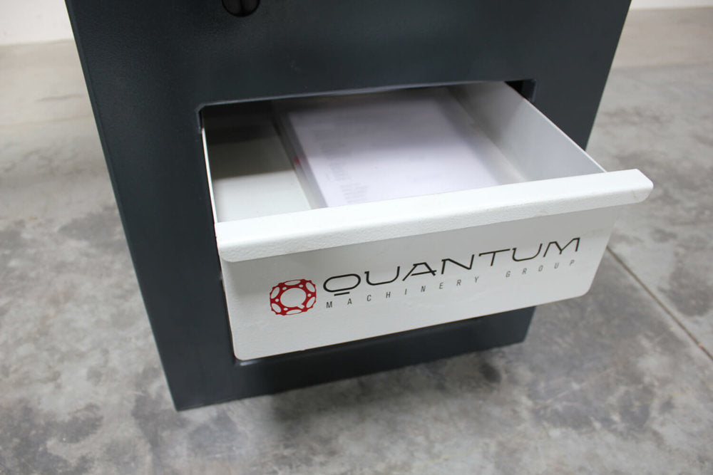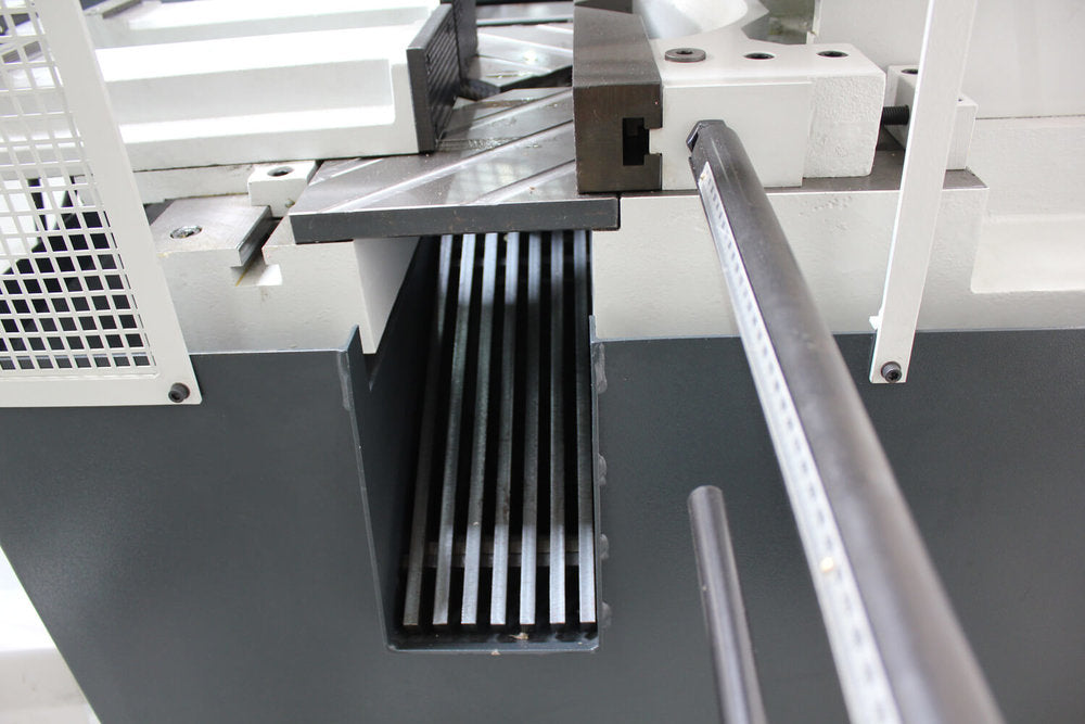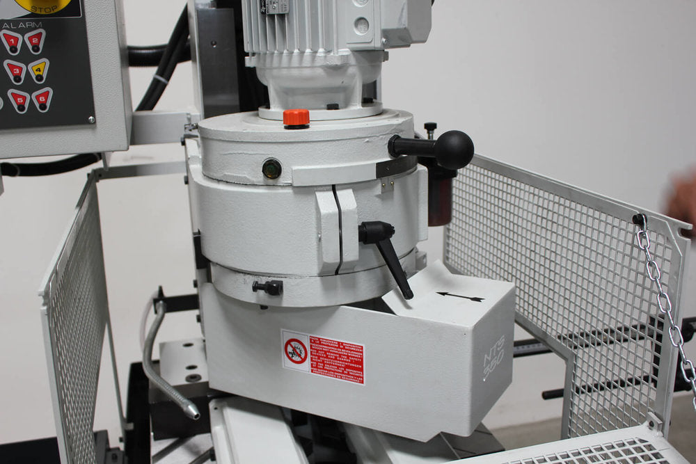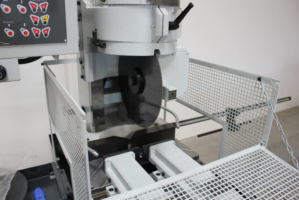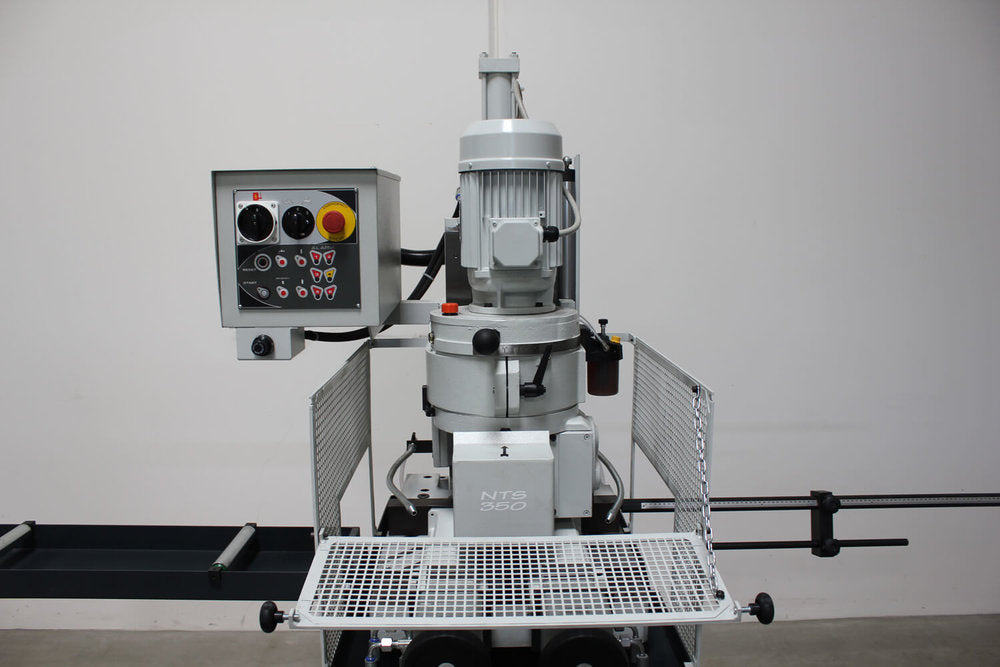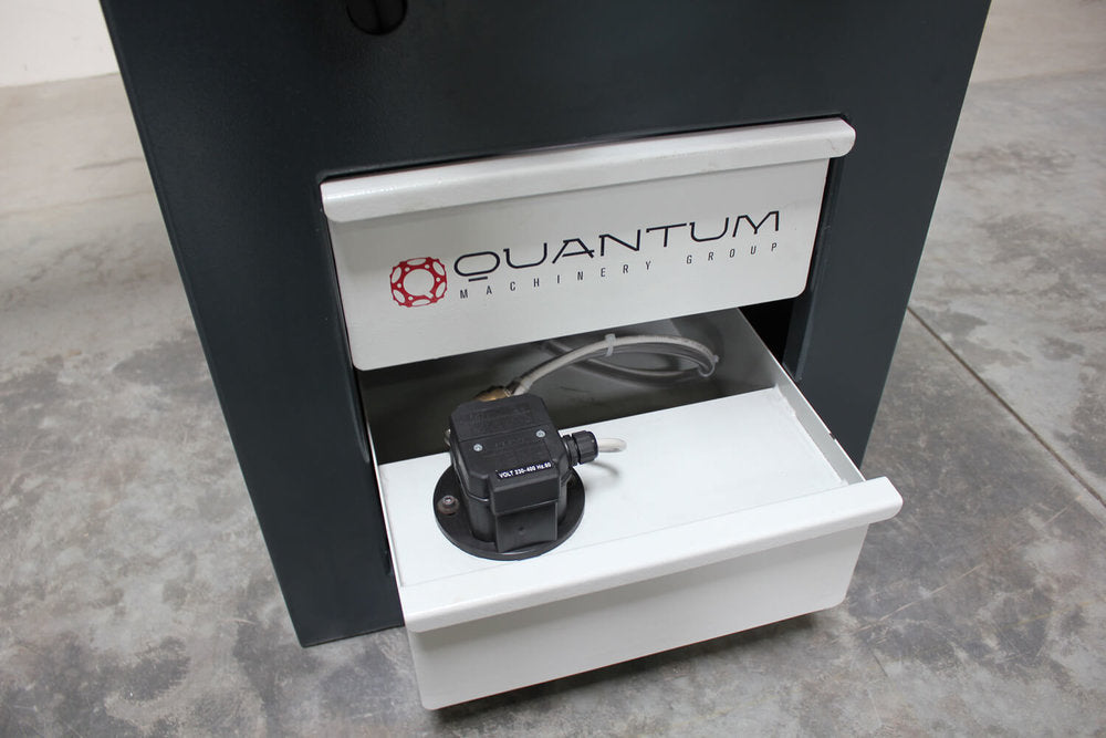 The Quantum Macc NTS 370 Vertical Semi-Automatic Cold Saw has a moveable head that can move up to 45 degrees right and left; and the head also has rotation stops at 45° - 0° - 45°. The NTS 370 has a vice that is complete with an anti-burr device, and a motor pump for blade lubrication. This unit is equipped with a bar stop, bar support arm, and service tools, as well as the machine's manual and steel pedestal. Electrical: The NTS-370 can be brought in at either 220 Volt / 3 Phase / 60Hz or 480 Volt / 3 Phase / 60Hz.